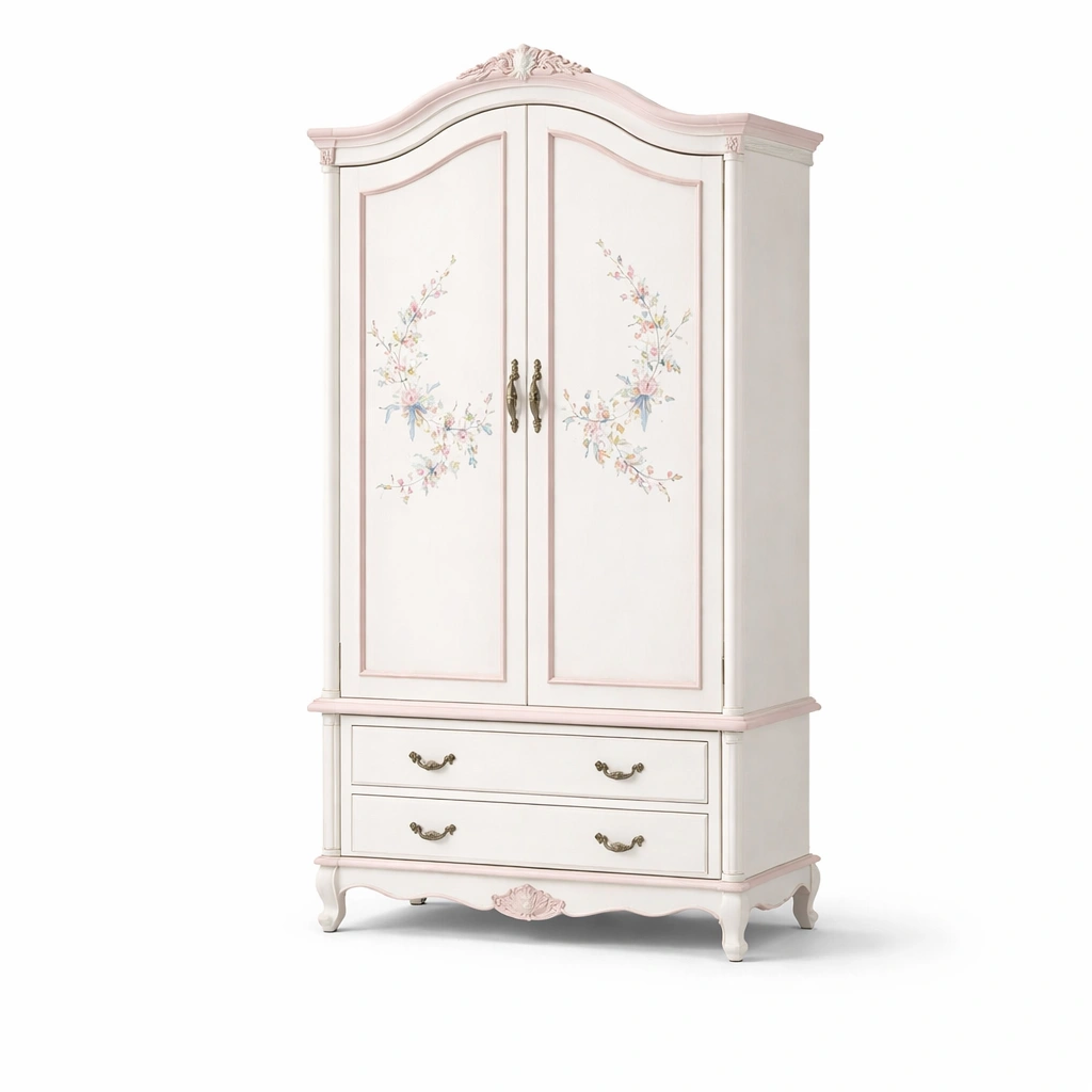 Armario de madera con decoración floral con puertas y cajones