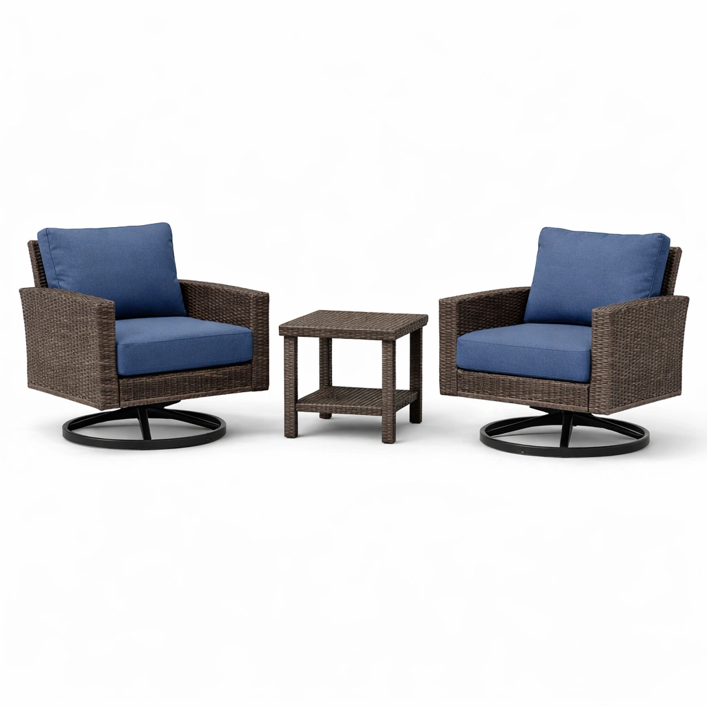 Conjunto de descanso de ratán sintético con sillas giratorias y mesa auxiliar