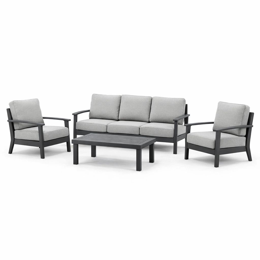 Conjunto de sofás de aluminio con cojines de poliéster gris